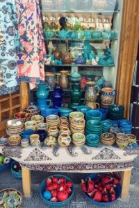 Clay, silk, brass, and walnut wood , every material tells a story. The scent of wet clay in pottery workshops of Meybod. The shimmer of silver threads in Yazd’s zardozi embroidery. The warmth of natural wool in Qashqai carpets.